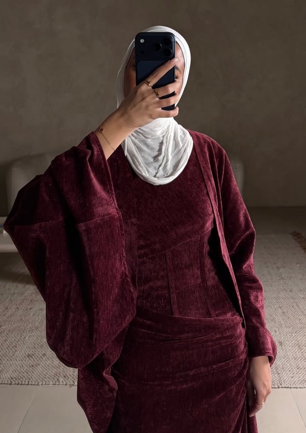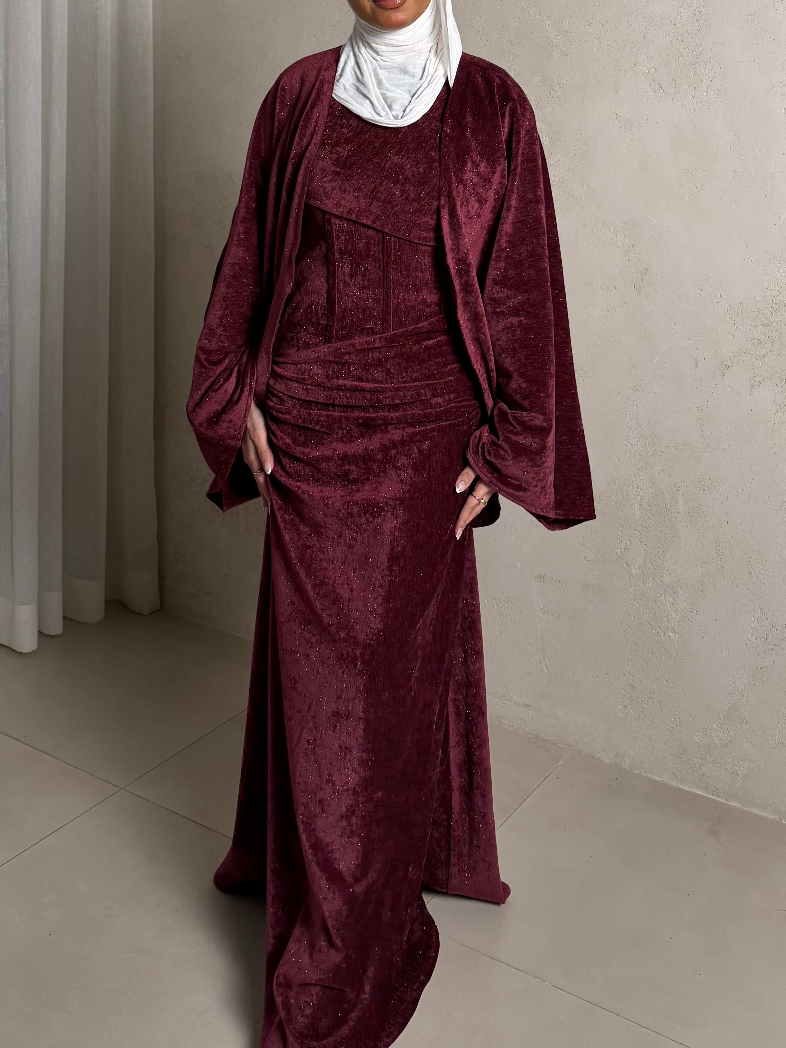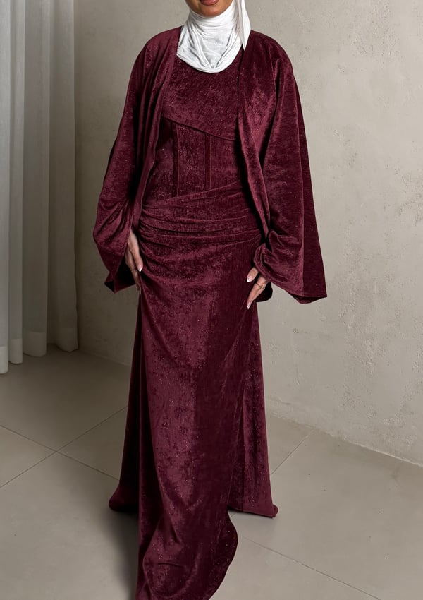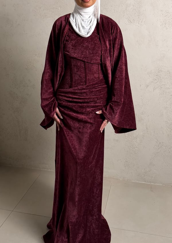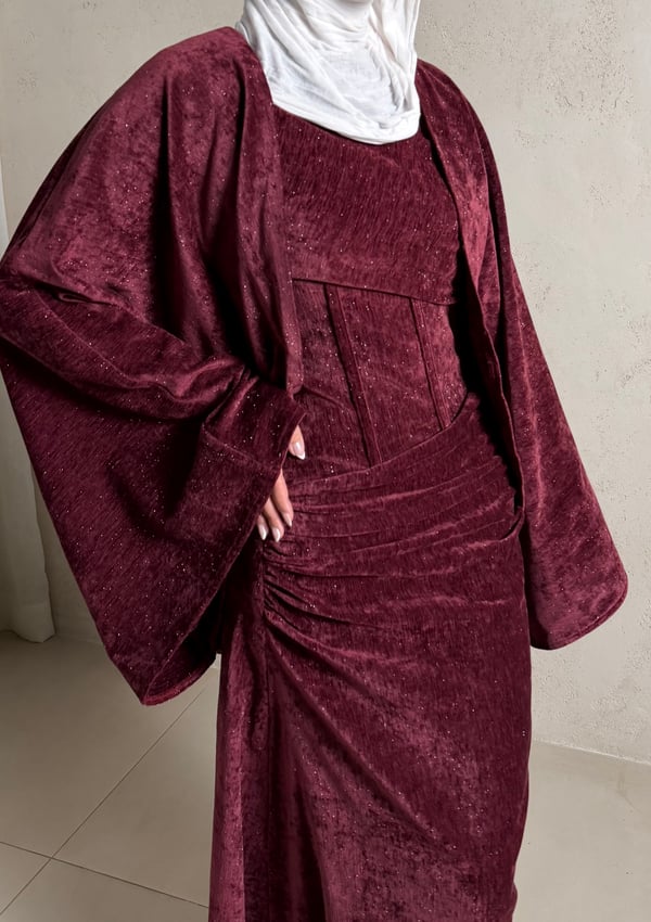 Three piece daraa: long cardigan, dress ...