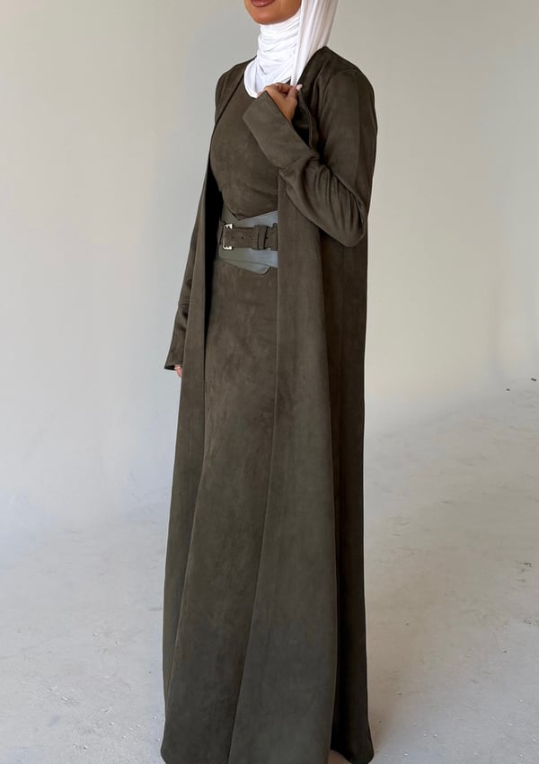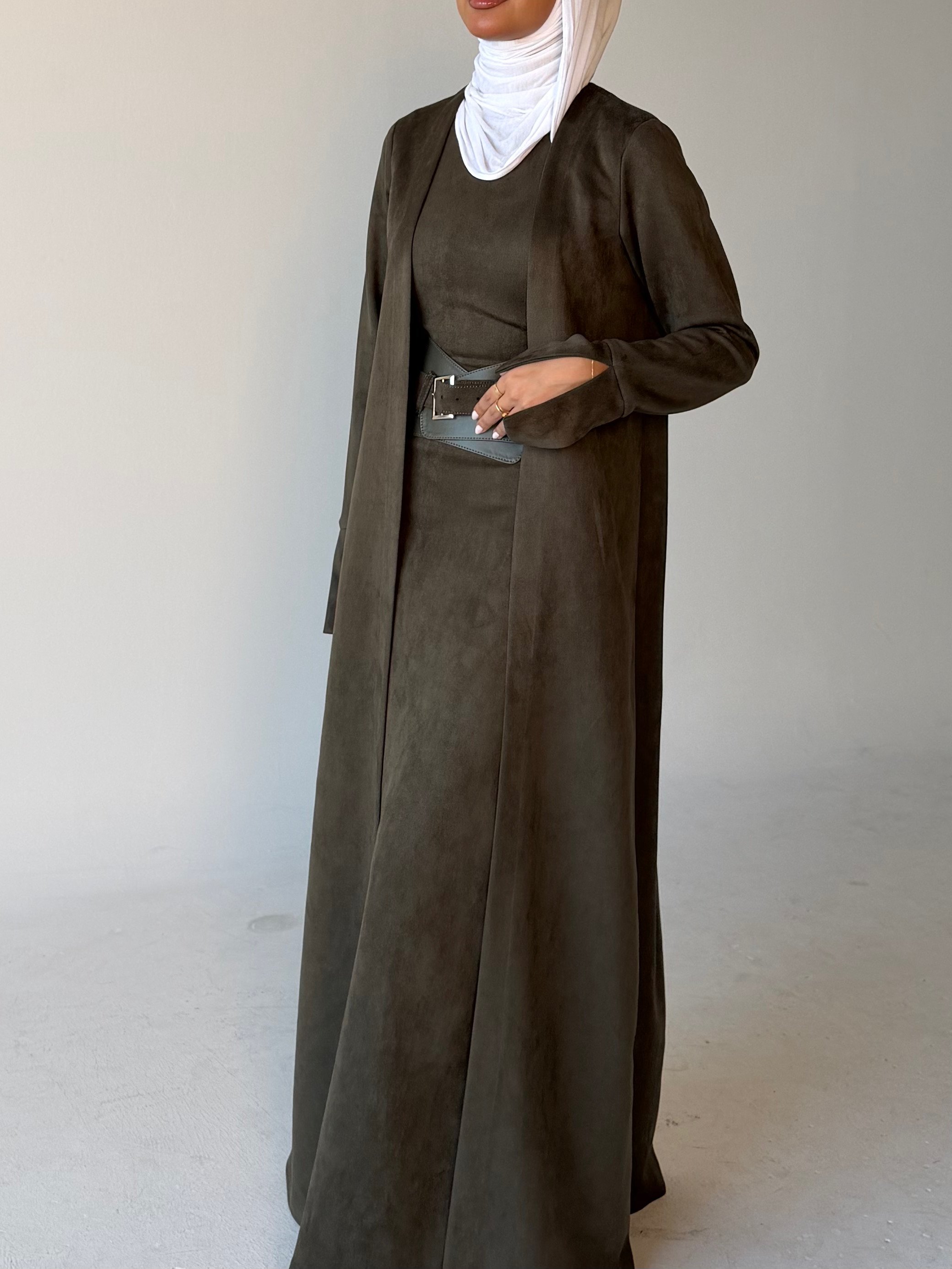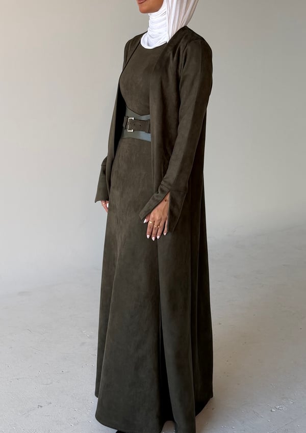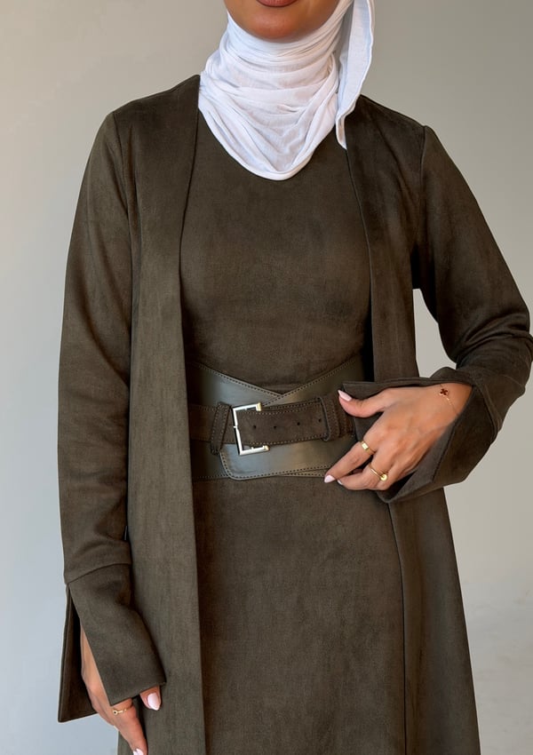Three piece daraa: long cardigan, dress & belt.